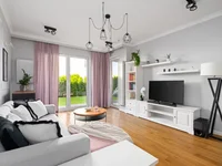 L'appartement est situé au rez-de-chaussée d'un immeuble de 2 étages et comprend un salon avec un coin cuisine et un coin repas (28 m2), une chambre (11 m2), un couloir (6 m2), une salle de bains (4 m2). Hauteur du plafond - 280 cm. La cuisine est entièrement équipée avec des appareils ménagers. La terrasse est partiellement couverte, équipée d'un auvent avec un capteur de vent et contrôlée par une télécommande.