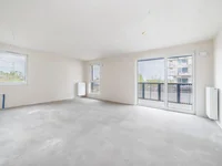 L'appartement dispose d'un grand salon avec une kitchenette d'environ 33.72 m2 avec une sortie vers un balcon spacieux, une chambre d'environ 16.18 m2 avec une salle de bains privative de 6.59 m2, deux pièces supplémentaires de 12.51 et 11.95 m2, une salle de bains de 4.82 m2 et un couloir de 13.97 m2.