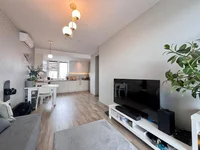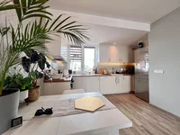 L'appartement est fini à un bon standard. Cuisine sur mesure, placards intégrés. Entièrement meublé et équipé d'appareils ménagers (machine à laver, lave-vaisselle, réfrigérateur, four, plateau de cuisson).