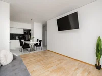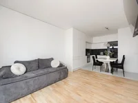 Appartement moderne de deux chambres avec jardin sur Varsovie Wola situé au rez-de-chaussée d'un immeuble de sept étages avec ascenseur à partir de 2019 au Fort Wola 12B.