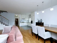 Nous vous présentons une maison jumelée d'une superficie totale de 151,30 m2, avec un grenier supplémentaire transformé en chambre. Construite en 2011, la maison est située dans une communauté confortable et fermée. Le rez-de-chaussée dispose d'un salon spacieux avec une cuisine reliée au salon (45,8 m2) et un accès direct au jardin orienté sud. Vous trouverez également un vestibule, un hall d'entrée, une salle de bains avec une fenêtre (3,66 m2), et un garage (17,78 m2).