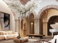 Lignes droites et courbes, métal, béton et pierre, arcs et colonnes font de cet espace un lieu polyvalent et fonctionnel, créé à la fois comme un espace de vie et comme un lieu de travail.