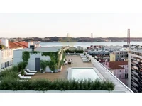 Il y aura un toit avec une piscine et un espace de loisirs avec une vue impressionnante sur la rivière et le pont 25 de Abril.