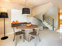 En entrant, vous serez accueilli par un espace ouvert qui combine harmonieusement le salon et la salle à manger, avec un accès direct à une charmante terrasse extérieure. La terrasse offre une belle vue sur le jardin privé et les espaces verts environnants. La cuisine est entièrement équipée avec des appareils modernes et de haute qualité.