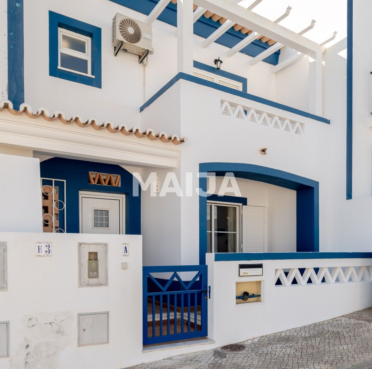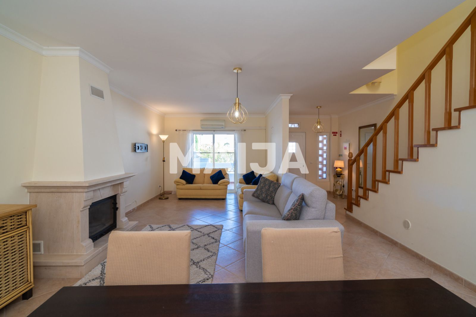 Cette charmante maison de ville typiquement portugaise en bon état, peinte en bleu et blanc, dispose de grands espaces lumineux et spacieux et d'un grand jardin ensoleillé. La maison s'étend sur 2 étages. Le rez-de-chaussée a des sols carrelés traditionnels tandis que les chambres, au premier étage ont des sols stratifiés. Il y a la climatisation partout. Le rez-de-chaussée se compose d'un salon / salle à manger ouvert avec une cheminée à bois et accès à la terrasse avant, une grande cuisine équipée et équipée, un W.C & espace de rangement invité sous le bel escalier en bois. Le premier étage dispose d'une suite parentale avec douche, placards et balcon orienté est pour profiter du soleil du matin. Les 2 autres chambres sont orientées vers l'ouest. La chambre à deux lits dispose d'un petit balcon français et placards. La 3ème chambre a déjà été utilisée comme bureau. Il y a aussi une salle de bains familiale située à cet étage avec baignoire et bidet. À l'arrière de la propriété, menant de la cuisine, il y a un grand, bien entretenu, jardin clos avec un patio avec construit en brique barbecue et une belle pelouse verdoyante. En raison de la longueur du jardin, il ya une excellente exposition au soleil tout au long de la journée.