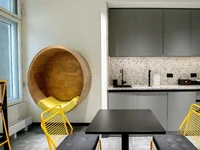 Mobilier. La disposition est mixte. Approvisionnement et ventilation des gaz d'échappement. Alerte incendie. Internet, téléphonie. Sécurité. Parking au sol.