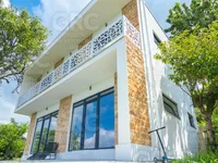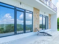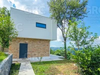 Two-story house with a monolithic housing 120 square meters. m., Filling - D500 300 mm ventilation concrete, facade - natural stone « dolomite » and decorative marble plaster, rehau energy-efficient windows. 3 bedrooms, 2 bathrooms, large kitchen with access to the terrace.