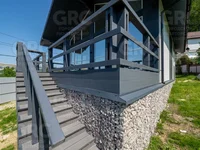 Maison utilisant la technologie à ossature Vakhverk, fabriquée en bois de Sibérie, raboté, calibré et séché à l'aide d'une chambre de séchage à une humidité de 7%, ce qui permet de conserver le matériau pendant une longue période.