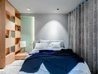 La résidence de campagne d'une superficie de 1500 m2 est construite sur un terrain forestier spacieux de 58 acres avec un design paysager. La façade dans le style moderne est bordée de pierre et de plâtre sombre.
