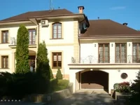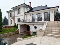 House in style « modern » C 4 bedrooms were built on a section of 24 hundredths C landscape design. House differs in spacious terraces and high basement with built -in garage.