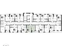 A vendre 1-k appartement n° 283 d'une superficie totale de 33.1 mètres carrés au 10ème étage d'un immeuble de 16 étages. Parure de boîte blanche.