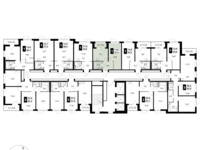 A vendre Appartement 1-k No117 d'une superficie totale de 33,6 m2 au 12ème étage d'une maison de 24 étages. Parure de boîte blanche.