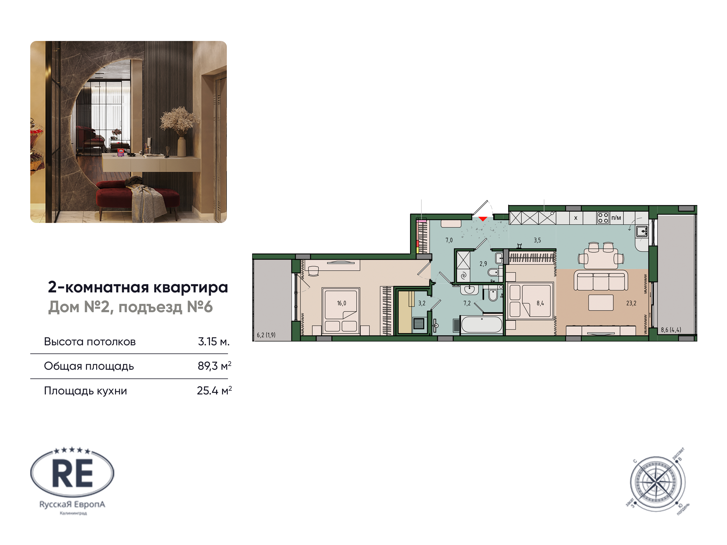 Appartement 2 chambres 89 m² Kaliningrad, Russie
