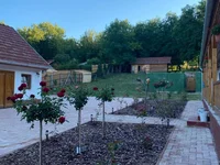 Plumbing and electrical wiring have been renewed; all pipes are underground with separate connections for the two houses. Gas connection is possible if necessary. Hot water is provided by a boiler. As there is no sewerage in the small village of Polanyi, a septic tank has been installed. The gas supply to the house is via a gas pipe, which is connected to the communal network of the village. The access road is paved with Viacolor paving stones.