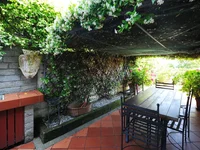 L'appartement à l'étage dispose d'une cuisine équipée d'un réfrigérateur, d'un four et d'une grande plaque de cuisson électrique, ainsi que d'une salle de bains avec placards. Dans le jardin sont inclus une cheminée, un lavabo avec de l'eau, un barbecue au gaz et une clôture d'entrée en fer.