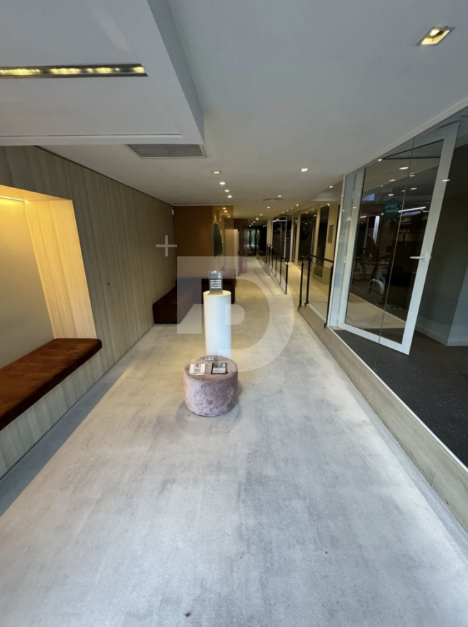 La chambre d'une superficie totale de 250m2 est située au premier étage d'un immeuble résidentiel de grande hauteur et est équipée d'une façade lumineuse de 9 mètres de long, ainsi que des fenêtres en verre qui sont parfaitement visibles de la route et de la partie piétonne de la rue.