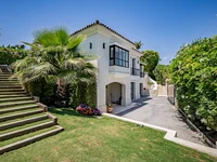 Exquisite villa nestled in the heart of the Golf Valley! A welcoming entry hall leads to the living room with a beautiful pitched roof and stunning fireplace in the center. The open-layout of the home becomes apparent with the merging kitchen & living room space opening up to an entertainers dream backyard with covered porch barbecue area and charming pool area. On this level there are two more bedrooms and the master suite with walk-in closet and views to the pool and La Concha mountain. Downstairs amenities include two convenient bedrooms, laundry room, garage, and a unique second living room / entertainment area styled with wooden floors.