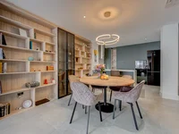 Année de construction 2021 Spacieux salon, qui améliore visuellement le miroir dans le couloir. Cuisine exclusive colorée équipée d'appareils de haute qualité – hotte d'extraction moderne, plaque de cuisson à distance et wi-fi, lave-vaisselle de grande capacité.