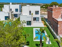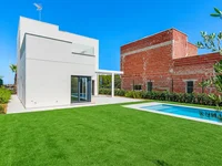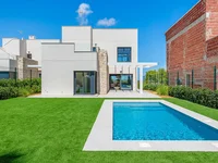 A l'intérieur de la villa moderne, il y a trois chambres doubles toutes avec placards. Deux d'entre eux ont une salle de bains privative avec douches à l'italienne. Deux autres salles de bains disposent également de douches à l'italienne. La villa dispose d'une cuisine ouverte avec un élément insulaire, d'un coin repas ouvert, d'un salon spacieux avec de grandes fenêtres de style français et de deux grandes terrasses ensoleillées au deuxième étage.