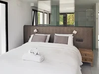 jardin, garage, stationnement, piscine privée, vue sur la montagne