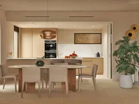 Disposition: Grand salon-salle à manger avec cuisine ouverte, créant un espace ouvert et lumineux.
