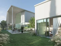 Habillé en blanc avec des touches de bois qui vont de pair pour créer un jeu visuel suggestif de textures. La simplicité de sa silhouette, la combinaison sage de matériaux et l'harmonie avec l'environnement naturel sont les clés de la baie 8. La célébration d'une vie tranquille. C'est un espace fonctionnel qui vous permet de profiter de tout, d'une salle de sport privée à la détente sur le canapé regardant un film.