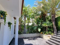 Une zone verte avec des arbres tropicaux et fruitiers, ajoutant de la couleur et de la vitalité au jardin et créant une atmosphère exotique dans tout l’environnement ;