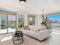 L'intérieur de la villa est conçu pour offrir un espace moderne et confortable. Avec une surface construite de 147,5 m² et un sous-sol fini de 110 m², la villa dispose de 4 chambres doubles et de 4 salles de bains complètes, toutes avec des finitions de haute qualité. La cuisine ouverte, équipée d'appareils modernes, s'intègre parfaitement au salon spacieux, créant un espace ouvert et accueillant. Les grandes fenêtres laissent entrer beaucoup de lumière naturelle, renforçant la sensation d'espace et de connexion avec l'extérieur. Les armoires encastrées dans les chambres offrent un grand espace de rangement. L'aménagement intérieur, qui met l'accent sur la fonctionnalité et le style, garantit que chaque détail contribue à une ambiance accueillante et élégante.