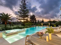 Vue panoramique sur la montagne de La Concha, un lac tranquille avec une fontaine, et les fairways entretenus du parcours de golf entourent la maison, offrant un cadre serein et privé. Une grande terrasse, un espace de détente, et l'option d'installer une cuisine extérieure entièrement équipée font de cet espace idéal pour se divertir et se détendre dans le vrai style méditerranéen.