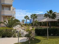 Le studio est très lumineux et chaleureux, orienté sud-sud-ouest. La terrasse offre une vue magnifique sur la mer et la zone verte commune.