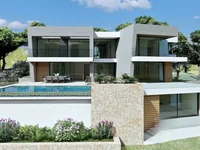 New Build design moderne de villa combine d'une manière élégante et fonctionnelle, l'architecture moderne et méditerranéenne. Sur la façade, caractérisée par de grandes formes géométriques basées sur des lignes diagonales, la couleur blanche domine et l'utilisation de la pierre naturelle lui permet de se fondre dans son environnement.