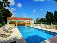 Possibilité spéciale d'acquérir une très grande propriété avec dépendances séparées et des terrains très généreux, tout à proximité du charmant Pueblo de Benalmádena. Installé avec finition champagne en marbre et chauffage au sol, facilité par des panneaux solaires. En entrant sur le terrain de la villa, on ne peut que remarquer les jardins et les arbres établis ainsi que les charmants espaces extérieurs entourés de belles vues sur la campagne et la mer. En entrant dans la maison principale au rez-de-chaussée, il y a une salle, qui mène à un grand salon-salle à manger (accès à la terrasse), salle à manger indépendante formelle (accès à la terrasse), salon, cuisine indépendante (accès à un grand patio/espace utilitaires, salle de télévision, 2 chambres (une en suite et les deux avec accès à la terrasse). À l'étage supérieur, la plupart des chambres ont accès à la terrasse principale. Très grande chambre principale avec salon, salle de douche / salle de bains, promenade dans le quartier de la garde-robe, et sauna. Trois autres chambres, toutes avec salle de bains privative. Dépendance No1 : Maison indépendante de 3 chambres avec 2 salles de bains, Dépendance n°2: 1 lit indépendant avec salle de bains. En outre, il y a un garage indépendant avec une salle de stockage, une grande piscine de 64m2, avec une zone de porche adjacente de 31m2. En outre, il y a de grands terrains sur lesquels il y a probablement suffisamment d'espace pour un court de tennis. Les vues sont fortement recommandées!