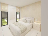 L'intérieur de ces maisons indépendantes est conçu pour maximiser le confort et la fonctionnalité. Avec trois chambres et deux salles de bains, chaque espace est soigneusement réparti pour offrir confort et intimité. Les sols en grès cérame apportent une touche d'élégance et de durabilité. Les volets roulants électriques et les placards intégrés sont des caractéristiques standard qui améliorent la fonctionnalité de la maison. De plus, la pré-installation de la climatisation assure que le climat intérieur est toujours adapté aux besoins de chaque saison.