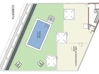 Au niveau supérieur du bâtiment il y a un espace commun avec un solarium, une piscine et une terrasse paysagée, qui offre une vue sur la mer Méditerranée et vous pouvez profiter pleinement du climat privilégié de la région.