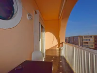 Ce penthouse est réparti sur deux étages. Le premier niveau comprend un salon-salle à manger avec accès à la terrasse frontale orientée au sud offrant une vue sur la mer, une cuisine indépendante, une chambre spacieuse et une salle de bains complète.