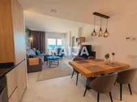 Le quartier résidentiel bien entretenu offre trois piscines chauffées, des zones de bains de soleil gazonnés, des zones de détente et un kiosque d'été. La zone est clôturée et sécurisée, et est située à seulement quelques mètres de la mer. L'appartement comprend également un parking souterrain et un espace de rangement.