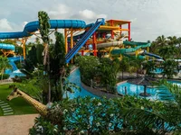 A full-service beach resort that includes villas with private pools and hotel rooms. Direct access to Mai Khao Beach, Phuket's longest and cleanest beach. On site: infinity pool, water park, restaurants, the largest convention center on the island. The complex is located a 15-minute drive from Phuket International Airport. Unforgettable views of the pool, sea and garden. An ideal place for family holidays and business events.