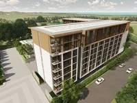 Moderne condominium de 8 étages, composé de 164 appartements et 7 magasins de détail. Il y a 3 types d'appartements: 1 chambre, 2 chambres et des appartements à deux niveaux avec 2 chambres. Grâce aux fenêtres vitrées en pleine hauteur, vous pouvez voir le Golf Club Laguna, les montagnes et le jardin luxuriant.