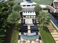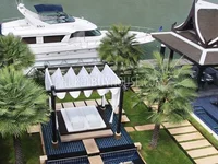 Villa Royal High Standart avec quai privé de 23 mètres. Situés au pied de chaque domaine riverain, les postes d'amarrage peuvent accueillir des navires jusqu'à 25 mètres et bénéficient de la gamme complète de services professionnels de conciergerie et d'entretien de marina de Royal Phuket Marina.