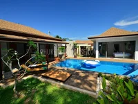 Villa de 237 m2 avec une superficie totale de 364,9 m2. 3 chambres et 3 salles de bains. L'intérieur est conçu dans un style tropical avec une prédominance de couleurs chaudes. La villa possède sa propre piscine (32 m) et est entourée d'un jardin verdoyant.
