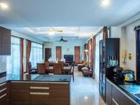 Sur le territoire, il y a une belle piscine mesurant 8 sur 4 mètres et une confortable terrasse d'été. Il y a un gazebo traditionnel thaïlandais en plein air, enveloppé dans la verdure autour. À l'intérieur de la maison, en plus des chambres, il y a une chambre supplémentaire pour la buanderie.