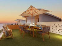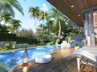 La villa présentée appartient au type de maisons de ville, 2 chambres, avec une terrasse spacieuse au dernier étage et une piscine privée avec jardin.