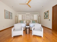 Nestled within the prestigious Layan Hills Estate in the serene enclave of Bang Jo, this exquisite 4-bedroom, 5-bathroom villa presents a rare opportunity to own a piece of luxury in one of Phuket’s most sought-after residential communities. Set on a generous land plot of 1,597 square metres, the villa offers a built-up area of 650 square metres of sophisticated living space, thoughtfully designed for both comfort and entertaining. The property seamlessly blends tropical elegance with modern functionality, featuring expansive indoor-outdoor living areas, vaulted ceilings, and natural stone finishes. The heart of the home is a stunning open-plan living and dining pavilion that flows onto the spacious pool terrace, creating the perfect setting for relaxing or entertaining in privacy. The fully equipped western kitchen features premium appliances, a central island, and ample storage. An additional Thai kitchen supports seamless catering and service. Each of the four large bedrooms is a private retreat, complete with elegant ensuite bathrooms, built-in wardrobes, and direct access to the landscaped gardens or pool area. The master suite boasts a walk-in wardrobe, spa-style bathroom, and a tranquil outlook over the pool and gardens. Outdoors, the villa is surrounded by mature tropical landscaping, with an oversized private swimming pool, shaded lounge terraces, a sala pavilion, and manicured lawns – ideal for family living or stylish gatherings. A multi-purpose room and home office offer additional flexibility for leisure or remote work. Located just minutes from Layan and Bang Tao beaches, international schools, golf courses, and the Boat Avenue and Laguna lifestyle areas, this residence offers peaceful seclusion with convenient access to Phuket’s top amenities. Key Features: 4 spacious bedrooms, all ensuite 5 bathrooms including guest powder room Land plot: 1,597 m² Built-up area: 650 m² Expansive living and dining pavilion Fully fitted western and Thai kitchens Private swimming pool with sun deck and sala Landscaped tropical garden with privacy wall Covered parking and storage 24-hour gated security High-end community with luxury villas Freehold title with Thai company ownership option This villa is ideal as a luxurious permanent residence, an upscale holiday home, or a premium rental investment. Properties of this calibre in Layan Hills Estate are rarely available—early viewings are highly recommended.