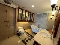 Roomy and Well-Equipped Living SpaceThis condo is really something if you need space and a bit of luxury without jumping into a full house. It’s on the 8th floor, giving you some nice views, and with 7 bedrooms and 8 bathrooms, it’s perfect for a big family or if you want extra rooms for guests or work-from-home setups.Kitchen That Works for YouThe kitchen’s got a clean, bright feel thanks to white cabinets and glass-front doors. You’ll find a large stainless steel fridge, built-in oven and stovetop, plus a central island with storage and a hanging rack for pots—makes cooking feel functional and a bit special. The polished stone floors and pendant lights above the island add a polished touch.Bathrooms and ComfortMultiple baths include some nice features like a clawfoot tub, walk-in glass shower with rainfall showerhead, and toilets with bidet sprays. Vanities have mirrored wooden cabinets and good lighting, so getting ready is easy and comfortable.Details and AtmosphereWood plank flooring and black & white tiled floors give characterBuilt-in wardrobes with mirrors make storage easyWarm wall sconces and recessed lighting create a cozy vibeDecorative rugs and a four-poster bed add a bit of charmComfortable living area with an upholstered sofa and mounted TVWith 5 garage spaces and freehold ownership, this place balances practicality and style. It’s a resale, so it has a lived-in feel but well-maintained. If you’re looking for space and thoughtful details, it’s worth coming by.