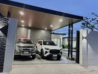 The outdoor area is the highlight of this villa — featuring a private swimming pool surrounded by tiled decking, perfect for sunbathing or hosting small gatherings. The automatic gate and covered parking for two cars add both security and convenience.