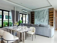 3-bedroom, 3-bathroom Garden Ville 9 house is available for sale in East Pattaya, sitting on a 540 sqm land plot. The property comes unfurnished but includes fitted furniture, allowing you to add your personal touch. The house features an open-plan living area for better airflow, a European kitchen, and a lovely garden that adds to its charm. It also includes car parking for your convenience.