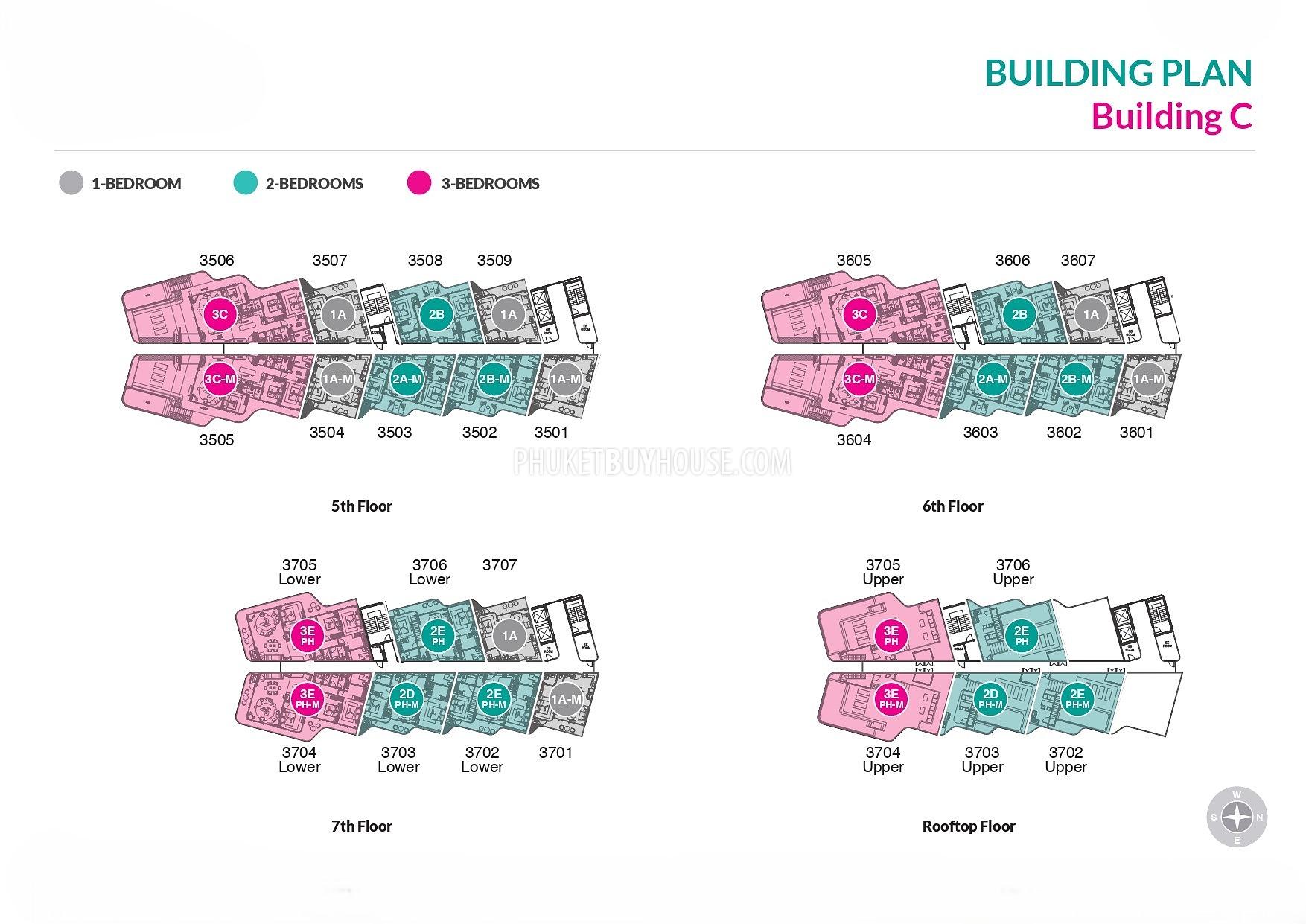 Les tailles des unités varient généralement d'environ 67 à 297 m2, avec de nombreux aménagements offrant des espaces extérieurs généreux et une vue panoramique.