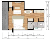 Studio apartment with sea view, suitable for couples or friends. This is a standard hotel room with all the necessary amenities for a comfortable stay. The room has a double bed, a sofa, a kitchen, a dining area, a balcony, and a private bathroom. Rooms of this type are located on the 7th - 8th floors of building A (the offered price is the price for room on the 7th floor).