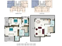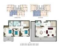 The bathrooms have a complete set of sanitary installations, built-in furniture and a wall mirror