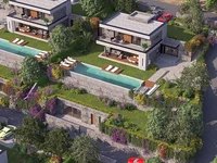 Le complexe avec 8 villas a une superficie de terrain de 8.000m2. Triplex avec vue sur la mer comprend une piscine privée, un jardin privé, un parking pour 2 voitures et un ascenseur.